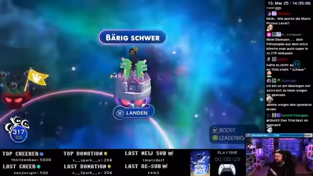 00:18:20Der Streamer beginnt mit dem Versuch, in das ASTROBOT-Speedrun-Level einzusteigen. Er hat vor, das Level so früh wie möglich zu starten, prüft zuvor, ob ein Update vorhanden ist, und gibt zu, dass er unsicher ist, wie gut er darin sein wird. Er äußert sich zu den bereits existierenden Speedrun-Levels, die er als "insane" und "geil" bezeichnet, und möchte das neue Level "Jamboree" ausprobieren, welches er als "mit Abstand das Beste" betrachtet.