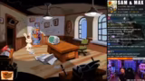 00:33:22Der Fokus liegt auf der Lösung von Rätseln im Point & Click-Adventure Sam & Max. Nachdem die Helden Yetis und eine Giraffenhalsfrau gerettet haben, folgen sie ihnen zu einer Yeti-Party. Dort angekommen, müssen sie ein komplexes Kostüm aus einem Bachstelzenoutfit, Teer und Mammuthaar anfertigen, um die Partygänger zu täuschen und einzuschleichen.