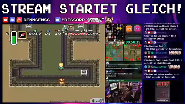 00:00:02Der Stream startet mit zeitkritischen Entscheidungen im Itemladen und dem Überlegen von Zügen. Der Streamer bewegt sich durch verschiedene Spielmechaniken, die schnell zur Frustration führen, und spricht über bevorstehende Events wie einen Mario-Party-Stream mit der Community und eine Zelda-ALTTPR-Race. Es werden Vorfreude und der Beginn der Spielsession mit Sam & Max geäußert, wobei technische Unannehmlichkeiten wie ein verdampfender Unterhosenträger humorvoll erwähnt werden.