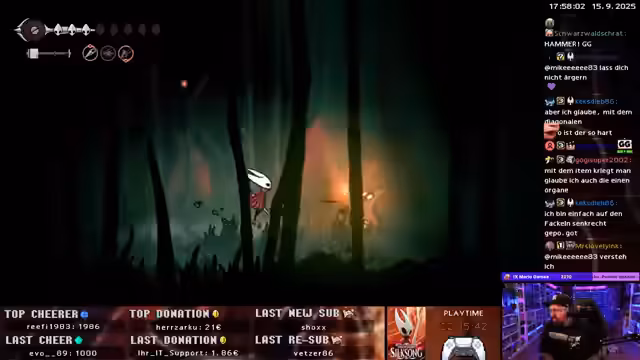 00:33:33Beim Spielen von Silksong zeigt sich der Streamer frustriert über die vielen Quests, die als 'lamm' und 'mega dämlich' bezeichnet werden. Sein Hauptziel ist es, geilen Bosskämpfen zu begegnen und Herausforderungen anzunehmen, nicht aber durch 'Abfarmen' von Ressourcen und Materialien wie 'Splitter' und 'Stacheln' zu gehen. Er fragt das Publikum direkt nach Tipps, wie er an Bosse kommt, und versucht, die Quests so schnell wie möglich zu erledigen, um endlich zum Kern der Action zu kommen.
