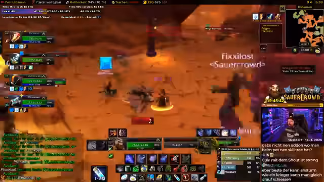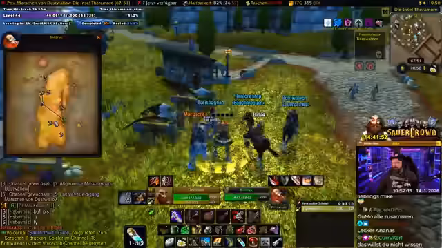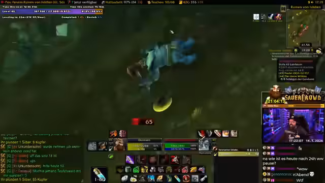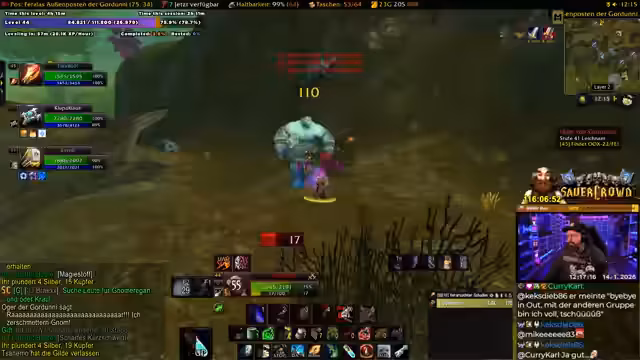 02:45:05Der Streamer beginnt mit einem Live-Stream eines World of Warcraft-Spiels, speziell einen Level 44 Gnome Schurken. Er erwähnt Probleme mit seiner Ausrüstung, insbesondere dass sein Red-Gear alt und für Schaden unzureichend ist, während er Heil-Gear bevorzugt. Es folgt ein Gespräch mit anderen Spielern, insbesondere Kani, der aus der Gilde entfernt wurde, weil er den Streamer beleidigt hat. Der Streamer reflektiert über Gilden-Dynamiken, wie Hanno einen Spieler wegen einer Beleidigung ("ist Hanno dumm") gekickt hat, und betont, dass solche Verhaltensweisen Konsequenzen haben. Diese Interaktionen zeigen den sozialen Aspekt der Gilde und die Bedeutung von Respekt im Spiel.