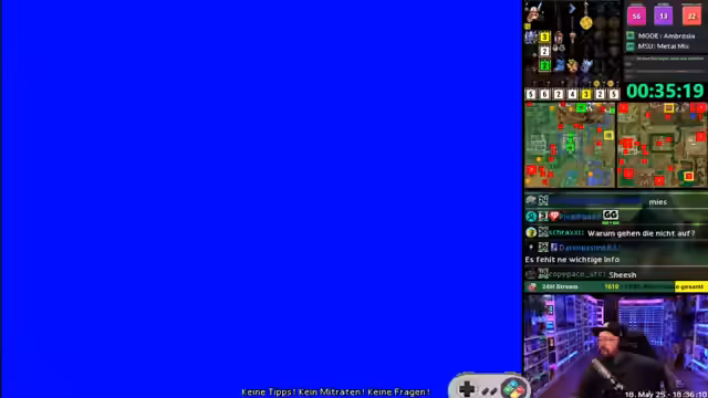 00:00:00Der Stream beginnt mit technischen Anpassungen der Lautstärke und Frustration über den schwierigen Modus in einem Spiel, der als zu levelorientiert kritisiert wird. Nach einer kurzen Pause wird mit dem Gameplay eines Spiels begonnen, das durch Farbanzeigen und eine strukturierte Vorgehensweise gekennzeichnet ist. Nebenbei werden Spiele wie Halo und Metal Gear Solid 5 erwähnt, wobei der Fokus auf einem taktischen Shooter liegt.