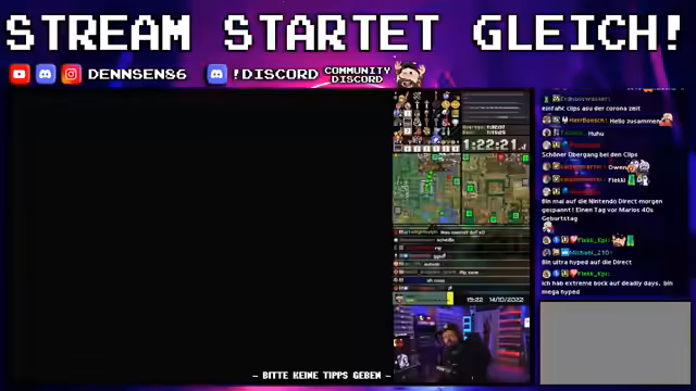 05:47:14Zu Beginn der Zusammenfassung wird auf eine Gefahrensituation im Spiel eingegangen, in der der Streamer sich in einem Gebiet mit hohem Schaden befindet, das Birdos bevölkern, die einen Herzteil dropen können. Neben der unmittelbaren Spielsituation wird ein wichtiges anstehendes Event beworben: der Nintendo Direct am nächsten Tag, der kurz vor dem 40-jährigen Jubiläum von Mario stattfindet. Als Vorbereitung darauf wird ein Bingo angekündigt, was auf die kommende Spannung hinweist.