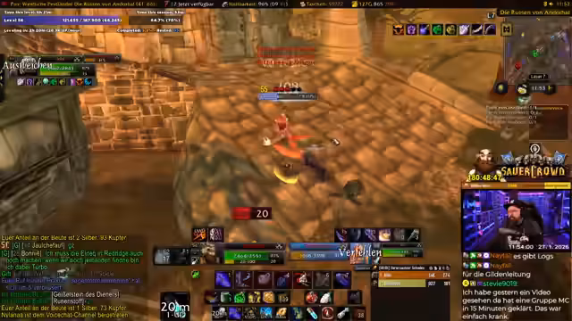 05:21:21Die Fortschritte der Charaktere sind zügig und der Streamer erwähnt, dass bereits Level 56 erreicht ist. Man konzentriert sich darauf, verbleibende Quests abzuschließen, bevor das Gebiet gewechselt wird. Es gibt eine kurze Pause, in der der Streamer Items verkauft und sein Inventar überprüft. Der Fokus liegt darauf, schnellstmöglich alle verfügbaren Quests zu erledigen, um das Leveln effizient fortzuführen.