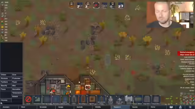 03:55:01Die Kolonie befindet sich in einem kritischen Zustand. Mehrere Kolonisten leiden an Muskelparasiten und Grippe, was zu einem ständigen Verlust an Medizin und Arbeitskraft führt. Die Situation wird immer prekärer, da es nur wenig Platz und kaum Ressourcen zur Verfügung stehen, um die Kranken zu versorgen. Die Gefahr, dass Kolonisten an ihren Krankheiten sterben, ist extrem hoch und erfordert ein sofortiges und konsequentes Handeln, um die Überlebenden zu schützen.
