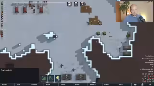02:49:20Die Basis wird schrittweise erweitert. Es wird eine Küche und ein Schlachthof gebaut, um die Nahrungsmittelproduktion zu optimieren. Ein zentrales Problem ist die unzureichende Kühlung der Lagerhalle und der generelle Mangel an Stahl. Streamer startet das 'Projekt Kühlbeule', um diese Schwachstelle zu schließen. Gleichzeitig werden die Arbeitsprioritäten der Kolonisten angepasst, um die Effizienz zu steigern und neue Projekte wie den Bau eines Forschungstisches vorzubereiten.
