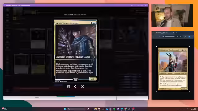 01:55:53Gegen Ende des Streams werden Karten wie Lavinia, Azorius Renegade und Aggressive Mining diskutiert, die zwar synergisch, aber als zu 'gemein' oder unethisch empfunden werden und daher nicht ins Deck aufgenommen werden. Der Streamer fasst zusammen, dass der Bau des Decks ein Balanceakt zwischen spielerischem Spaß, Budget und einer einzigartigen, spaßigen Idee ist und verspricht, die finale Liste nach der Stream-Session zu präsentieren.