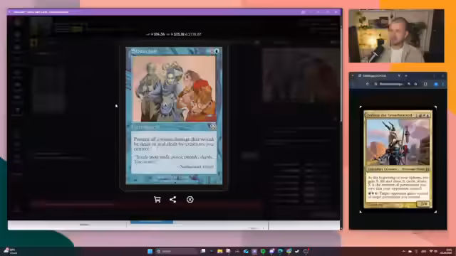 01:03:47Der Stream beginnt mit der detaillierten Analyse verschiedener Karten für ein neues Commander-Deck. Der Fokus liegt auf Karten, die die Kontrolle über Kreaturen oder andere Permanente an den Gegner übertragen, um Synergien mit dem Commander Zedru, the Great Hearted zu erzielen, der bei der Übergabe von Karten Leben und Karten zieht. Es werden Karten wie Mind Spiral und Parting Gift vorgestellt und hinsichtlich ihres Preises und ihrer Passbarkeit für das Deck bewertet.