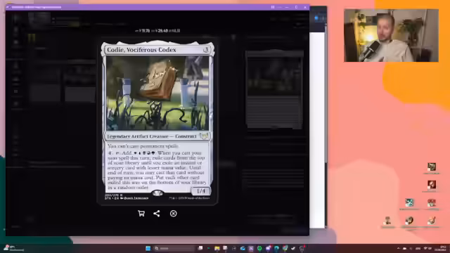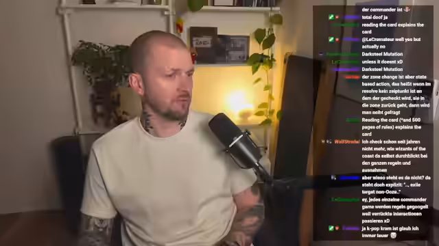 03:52:25Der Streamer diskutiert seine Herangehensweise beim Commander-Deckbau. Er erwähnt, dass er Companion-Karten manchmal in einer anderen Farbe als den Commander platziert, um Fehleinbauten zu vermeiden. Sein Fokus liegt auf dem Bau von Themendecks und Memes, anstatt auf teuren oder min-maxten Decks, die er als unrealistisch für seine Spielgruppe und sein Budget empfindet.