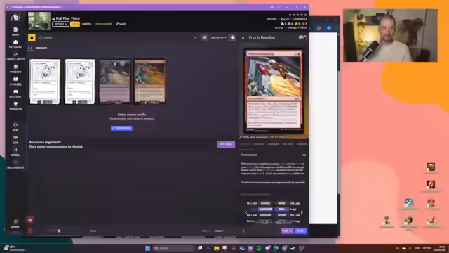 02:54:40Die Suche nach geeigneten Karten für ein Chaos-Deck konzentriert sich auf Karten mit Würfeln und zufälligen Effekten. Karten wie 'Scrambleverse' und 'Contraband Livestock' werden positiv bewertet. Gleichzeitig wird die Legitimität zahlreicher vorgeschlagener Karten kritisch hinterfragt. So wird 'Tactics Schmecktix' als illegal eingestuft, während 'Goblin Game' legal ist und aufgenommen wird. Der Streamer zeigt Frustration über die hohen Preise für Karten wie 'All Hallows Eve' und 'Sword of Hours', was ihre Aufnahme in das Deck infrage stellt.