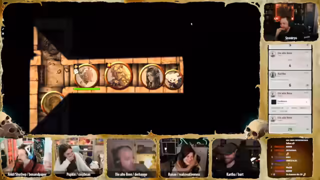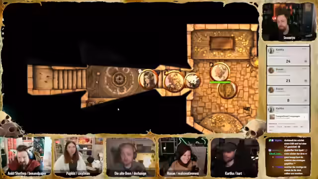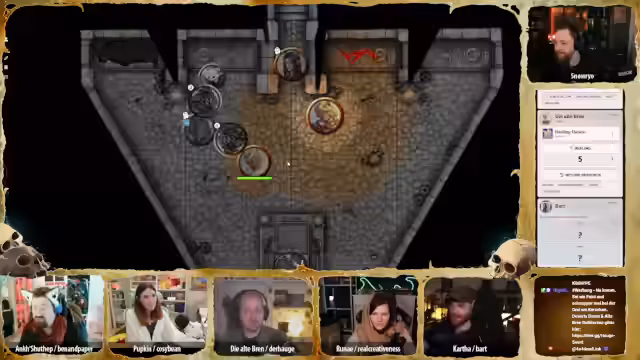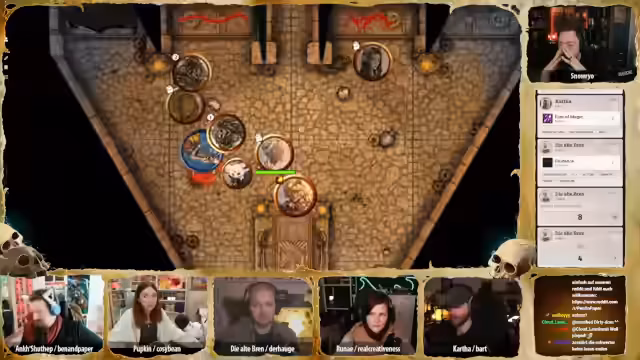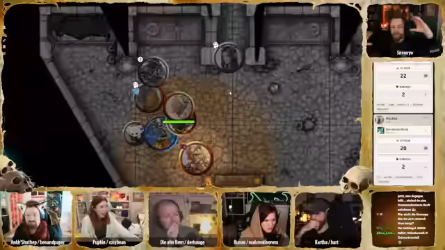 01:16:59Der Stream beginnt mit einer intensiven Kampfszene, in der die Charaktere gegen untote Skelette kämpfen. Pappkin nutzt geschickt seinen Dolch, um den Schädel eines Skeletts zu zerbrechen, während Karsa Healing Word einsetzt, um Runai zu heilen. Brenn aktiviert ihre Bratpfanne, um Licht zu erzeugen und die Gegner zu bekämpfen. Die Situation ist angespannt, da die Skelette sich ständig neu zusammensetzen und die Charaktere unter Druck geraten.