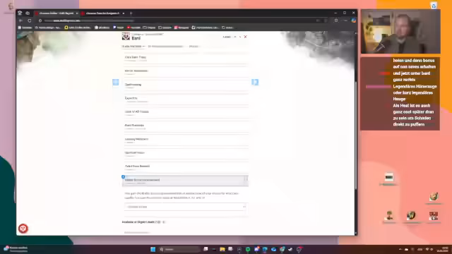 05:25:30Es wird überlegt, ob der 'Healer'-Feat die sinnvollste Wahl wäre, da er gut zur Lore des Charakters passt und nicht zu sehr auf Powerplay ausgelegt ist. Der Streamer fragt Snow, ob er 'Healer' als Feat nehmen kann, da er als Asima von Haus aus heilen kann. Die Frage, ob es ein Feat gibt, das erlaubt, eine Bonus-Action als Action zu benutzen, wird aufgeworfen. Der Streamer tendiert dazu, 'Healer' zu nehmen, da Snow nicht antwortet. Es wird erklärt, was Core Rules sind und dass es weitere Module mit Expanded Rules gibt. Der Streamer nimmt 'Healer' und tauscht einen Spell aus, wobei er Sleep rausschmeißt und Cure Wounds dazunimmt. Es wird überlegt, ob Cure Wounds mit Berührung gemacht werden muss, wenn der Fokus benutzt wird. Snow bestätigt, dass 'Healer' okay ist. Der Streamer nimmt Cure Wounds dazu und überlegt, ob er noch einen Cantrip offen hat. Es wird nach einem Cantrip gesucht, der gut zum Charakter passt, wobei True Strike und Gust Barrier in Betracht gezogen werden. Der Streamer entscheidet sich für Gust Barrier, da er defensiv ist und gut zum Charakter passt. Es wird überlegt, ob noch ein Second-Level-Spell dazugenommen werden soll, wobei Lesser Restoration und Heat Metal in Betracht gezogen werden. Der Streamer entscheidet sich für etwas, das gut zum Charakter passt und wählt etwas aus, bei dem alle lachen. Es werden RP-Picks gemacht und der Streamer glaubt, alles richtig gewählt zu haben. Die HP werden angepasst und der Streamer schickt den Link an Snow.
