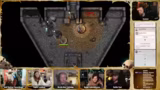 02:27:29Die Gruppe untersucht einen Sarkophag mit Vogelkopf anstelle des erwarteten Drachenkopfes. Nach einem erfolgreigen Athletics-Check gelingt es ihnen, den schweren Deckel anzuheben. Beim Öffnen ertönt ein lautes Knacken, was sie alarmiert. In der Kammer darunter entdecken sie eine Leiter, die in eine tieferliegende Schatzkammer führt. Die Atmosphäre wird unheimlich, als sie bemerken, dass an diesem Ort Lebensenergie verloren geht. Sie beschließen, die Kammer zu erkunden, während sie spüren, dass sie nicht allein sind.