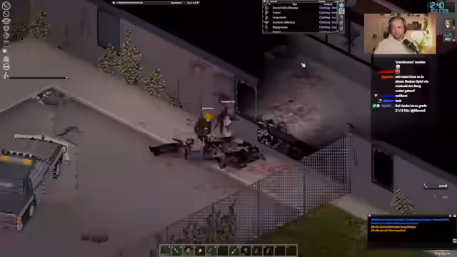 02:49:32Der Streamer wechselt das Thema und startet das Spiel 'Project Zomboid'. Er und sein Mitspieler 'Herr Werner' erkunden eine postapokalyptische Welt, in der sie sich in einem Gebäude eingenistet haben. Sie stellen fest, dass die Tür zerstört ist und Zombies nahe sind. Die Kommunikation erfolgt über Discord, was zu technischen Unstimmigkeiten und dem Verlust von wichtigen Gegenständen wie Brettern für die Reparatur führt.