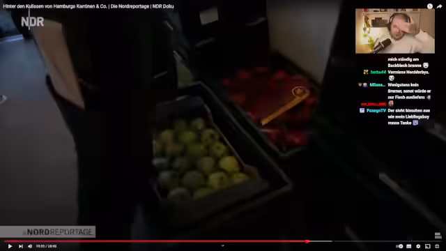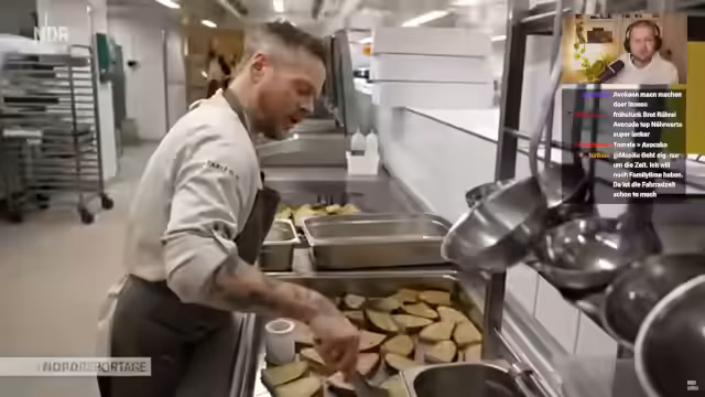 02:08:48Der Stream besucht eine Stadtküche, die direkt neben dem HSV-Stadion liegt und auch für externe Gäste geöffnet ist. Der Küchenchef beschreibt den typischen Alltag, bei dem mitten in der Schlange am Büffet portioniert wird, um den Zeitdruck der kurzen Mittagspausen der Gäste gerecht zu werden. Besonders interessant ist die Preisgestaltung, wobei ein Hauptgericht wie ein veganer Gemüsecurry mit Jackfruit für 10,95 Euro angeboten wird, was im Vergleich zu studentischen Mensas teurer, aber für die Qualität als angemessen empfunden wird.