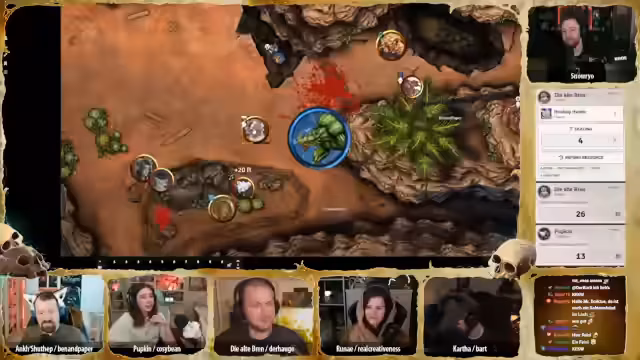 00:20:09Der Stream startet mit technischen Vorbereitungen und dem Begrüßung der Zuschauer. Der Moderator stellt ein, dass es heute um Pen & Paper geht und die Gruppe mitten im Koboldkampf ist. Bart, Ben und Lisa sind anwesend. Der Moderator erwähnt, dass der erste Teil der Serie bereits online ist und die Charakterbilder überarbeitet wurden. Nach einigen technischen Anpassungen beginnt das Spiel mit dem Intro.