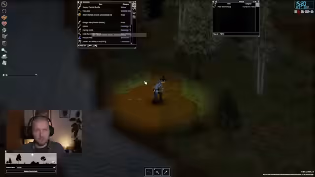 01:35:34Ein neuer Craft-Bereich wird aktiviert, um Gegenstände wie Wooden Rods, Splints und einfache Werkzeuge herzustellen. Es wird versucht, Rezepte durch das Forschen (Research Craft) zu erlernen, um beispielsweise Bonespike-Waffen herzustellen. Gleichzeitig wird das Inventar aufgeräumt. Es fällt auf, dass das Wasser knapp wird und ein sicherer Ort, um Feuer zu machen, fehlt. Das Spiel wird als sehr komplex beschrieben, da sich die Mechaniken nicht immer intuitiv erschließen.