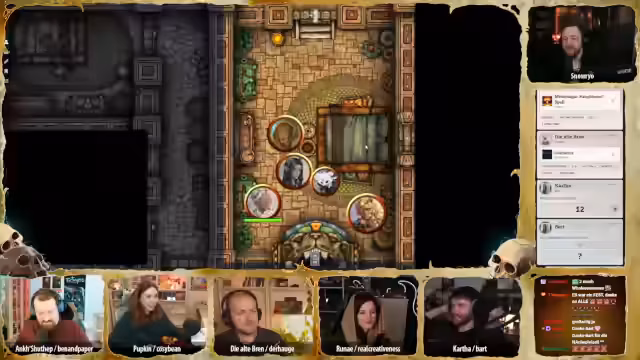 02:47:51Die Gruppe beschließt, ihrer Unruhe über den Archivar Tobrahim nachzugehen. Als erster Schritt soll Kata versuchen, dessen Gedanken zu lesen, um mögliche Besessenheit aufzudecken. Um nicht negativ aufzufallen, soll dies mit einem Safran-Gastgeschenk kaschiert werden, das zuvor auf dem Markt erworben wurde. Parallel dazu soll nach einer Expertenin für Flüche gesucht werden, um eventuelle Gegenmaßnahmen zu eruieren. Pupkin gibt dabei zu, aus der Hütte des Archivars einen kleinen Edelstein mitgenommen zu haben, was möglicherweise zur Ursache der kopflosen Käfer im Essen führen könnte.