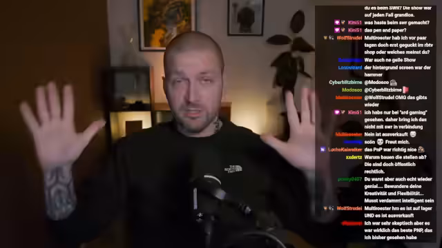 03:33:53Ein Zuschauer erwähnt das Projekt „Fehler im System“, was zu einer ausführlichen Diskussion über die Entstehung und den Veröffentlichungsprozess der Produktion führt. Der Streamer erklärt, dass es sich um ein gemeinsames Projekt mit dem SWR handelt, das klassisches Pen & Paper mit Virtual Production verbindet. Er spricht über die Herausforderungen der Bewerbung und beantwortet Kritik am geringen Werbeumfang.