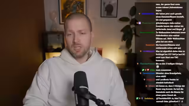 00:22:35Es folgt eine ausführliche Unterhaltung über kulturelle Unterschiede und persönliche Meinungen zu Weihnachtsbräuchen. Der Streamer stellt fest, dass sein familiärer Brauch, den Weihnachtsbaum erst Anfang Dezember aufzustellen, im Gegensatz zur Tradition steht, erst nach dem Toten Sonntag zu dekorieren. Zudem wird die japanische Ästhetik von Weihnachten und die hohen Kosten für europäischen Baumschmuck im Vergleich besprochen.