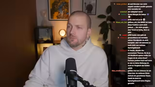 01:10:50Im Chat entbrennt eine Diskussion über den Begriff 'Heimat' und dessen politische Konnotationen. Der Streamer kritisiert scharf beleidigende Rhetorik und die Propagierung fragwürdiger Gedankengüter. Er betont, dass die Idee, sich an fiktionalen Dritten abzuarbeiten, wie 'irgendwelchen Linken, die angeblich sowas sagen', lediglich zur Radikalisierung führe. Er stellt klar, dass es keine breite Masse gebe, die den Begriff Heimat ablehne, und bezeichnet dies als 'Strohmann-Ding'. Er appelliert an die Zuschauer, die grundsätzliche Idee zu hinterfragen, dass politische Strömungen automatisch gegen oder für sie seien, da dies die meisten Menschen nicht weiterbringe, die zur 'ausgebeuteten Schicht' gehören. Für ihn persönlich ist der Begriff Heimat positiv besetzt und ein schönes, vielschichtiges Wort, das nicht leicht zu übersetzen ist und verschiedene Bedeutungen von Ort bis Gefühl umfassen kann.