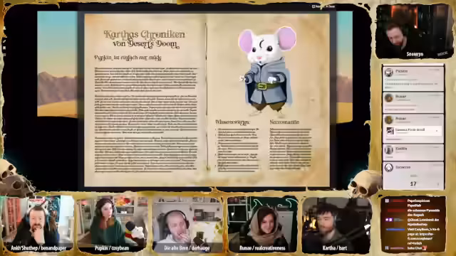00:20:17Der Stream beginnt mit der Ankündigung einer lang erwarteten Pen & Paper Runde nach einer längeren Pause. Der Streamer betont, dass er vor dem Stream nicht World of Warcraft gespielt hat, um jeglichen Vorwurf der Vorbereitung zu entkräften. Nachdem er Level 29 erreicht hat und das Level-Cap von 30 noch nicht im Spiel freigeschaltet ist, wechselt er den Bildschirm und startet den Call mit den anderen Teilnehmern für die Dungeons & Dragons Kampagne 'Deserts Doom', die nun an Tag 12 ansetzt.
