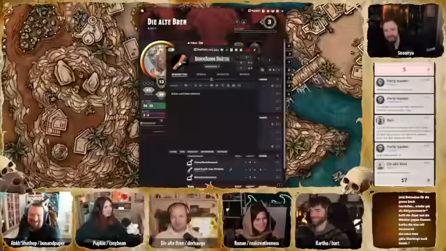 02:16:36Die Gruppe begibt sich auf den Markt, um sich einzurüsten. Kata, die als Köchin agiert, sucht nach einer passenden Waffe und entscheidet sich für eine Bratpfanne, die sie als spiritual focus nutzen möchte. Nach Verhandlungen kauft sie eine spezielle, selbst erhitzbare Kupferpfanne mit der Gravur 'Oma Brenns Bonbonfabrik'. Weitere Einkäufe und Gespräche mit Händlern schließen sich an, um sich für die bevorstehende Reise in die Wüste vorzubereiten.