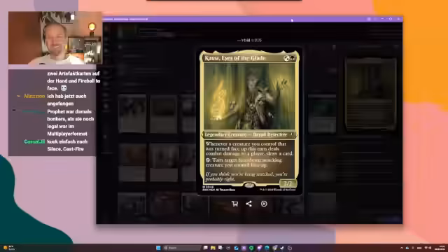 01:16:32Es geht um persönliche Magic-Projekte und Spielabende. So freut sich der Streamer auf ein Treffen mit Freunden zum Spielen, wobei er oft unkonventionelle Meme-Decks baut, die er gegen erfahrene Spieler mit etablierten Strategie-Karten wie Gamechanger antreten lässt. Gleichzeitig erwähnt er sein aktuelles Deck Kaust auf Auge und plant, im Stream eines seiner Lieblingsdecks vorzustellen, das Teil einer bevorstehenden Kooperation ist. Das neue Set Edge of Eternity wird dabei kritisch betrachtet, da die Booster-Öffnung wenig Freude bereitete, und es besteht die generelle Absicht, zukünftig gezielter günstige Singles statt Booster zu erwerben.