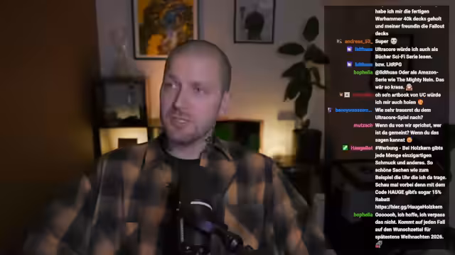 00:42:22Für 'Ultracore' wird ein Artbook in Kooperation mit dem Zeichner 'Drawing Like a Sir' vorbereitet, das die komplette Lore illustrieren soll. Ein Kickstarter für die aufwendig produzierte Buchedition von 100-200 Euro ist für nächstes Jahr geplant. Parallel wird 'Nordic Whispers' als Detective-Game in Entwicklung vorgestellt, dessen Release voraussichtlich 2027/2028 erfolgt. Die Rechte liegen vollständig beim Streamer, wobei Charaktere bei Morin Manor ausgenommen sind.