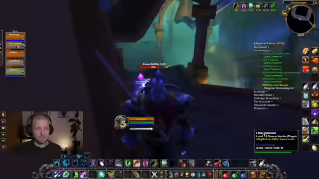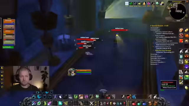 03:21:16Während des Durchlaufens von Gnomeregan gerät die Gruppe in Gefahr, da der Tank versehentlich einen größeren Mob-Pull auslöst und dabei mehrere Gruppen mit verlinkten Zwergen und einem Boss anvisiert. Die Heiler stehen ungünstig positioniert, was die Situation kompliziert. Der Streamer kommentiert kritisch, dass dies zu mehr Todesfällen hätte führen können, und betont die Notwendigkeit einer vorsichtigeren Herangehensweise, insbesondere bei dem Boss mit dem verlinkten Golem.