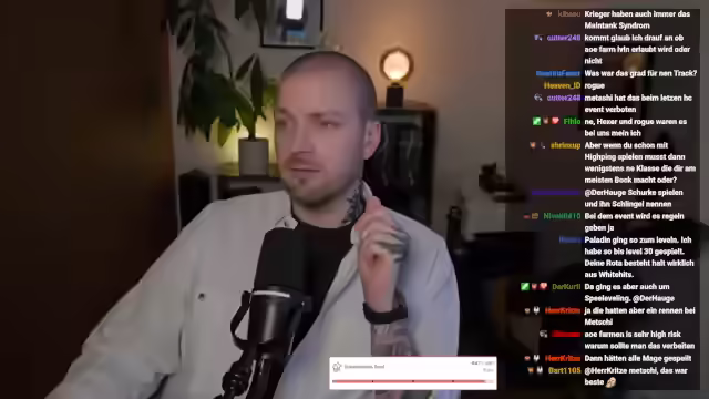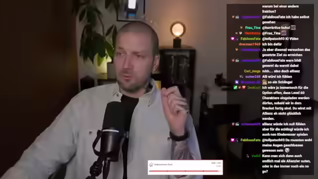 00:36:28Es wird über die Teilnahme an einer Hardcore-WOW-Gilde unter der Leitung von Papa Platte diskutiert, wobei Metashi bereits dabei ist. Ich überlege, ob ich mitmachen soll und welche Klasse ich spielen könnte. Schamanen-Tank wird in Betracht gezogen, aber es wird betont, dass ich dann etwas "Richtiges" spielen müsste und nicht auf Heilung umspecken könnte. Eine Wette wird vorgeschlagen: Wenn die Gilde es bis zu einem bestimmten Datum schafft, rasiere ich mir eine Glatze. Die Schlingel werden jedoch weiterhin priorisiert, falls The Burning Crusade startet. Verschiedene Klassen wie Hunter, Priester, Hexer und Krieger werden diskutiert, wobei jede Klasse ihre Vor- und Nachteile im Hardcore-Modus hat. Hexer werden als stark, aber fehleranfällig beschrieben. Es wird empfohlen, als Hexer keine Höhlen zu betreten. Ich werde Metashi kontaktieren, um weitere Details zu erfahren und meine Teilnahme zu bestätigen. Es wird erwähnt, dass ich über 30 noch nie Lust auf Hardcore hatte.