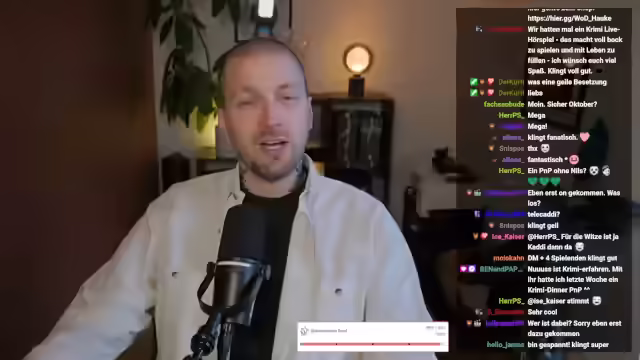 00:09:57Es wird bekannt gegeben, dass ich an der SWR-Show 'Fehler im System' mitwirke, einer Pen-&-Paper-ähnlichen Produktion von Rocket Beans, die am 24. und 25. Oktober auf dem Twitch-Kanal des SWR ausgestrahlt wird. Die Show wird in den Studios in Baden-Baden stattfinden und interaktive Elemente beinhalten, darunter Schauspieler, die Szenen vorspielen, und Umfragen für die Zuschauer. Das Format ist eine Mischung aus Pen & Paper und Unterhaltungsformat, wobei ich als Game Master fungiere. Budi, Uke, Haselnuss und Kaddi TV werden als Spielende dabei sein. Es wird ein Kriminalfall sein, bei dem die Spielenden Charaktere verkörpern und Rätsel lösen müssen. Es gibt keine Tickets für die Veranstaltung, da sie in einem Studio stattfindet, aber es wird in den nächsten Tagen und Wochen Ankündigungen von Rocket Beans TV zu anderen Pen & Paper-Formaten geben, für die man Tickets erwerben kann. Es wird betont, dass es sich nicht um ein Krimi-Dinner handelt, da die Spielenden nicht in Rollen schlüpfen, sondern ihre Charaktere spielen. Das Regelwerk basiert auf How to be Hero, welches eine Wiki-Lizenz besitzt.