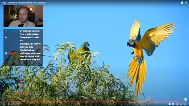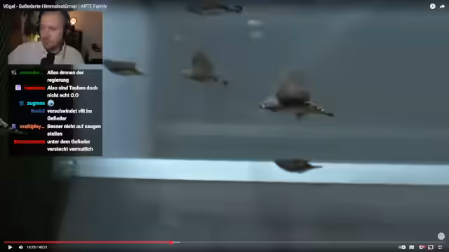 00:08:16Nachdem die technischen Probleme vorerst gelöst sind, beginnt der reguläre Inhalt des Streams mit dem traditionellen 'Doku-Donnerstag'. Der Streamer wählt die Dokumentation 'Superkräfte der Vögel' aus und startet diese. Er erwähnt zuvor den Verlust von Zuschauern aufgrund der technischen Probleme und bittet um Nachsicht. Die Atmosphäre ist gelockert, und der Streamer macht sich bereit, in die Inhalte einzutauchen und mit der Community zu interagieren.