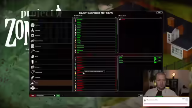 02:16:06Es wird überlegt, eine kleine Bar in Golden Guy zu eröffnen, möglicherweise als zukünftiges Projekt nach den Medienaktivitäten. Es wird eine Project Zomboid Session gestartet mit Community Challenges, die von Nivek im Discord vorgeschlagen wurden. Es werden verschiedene Quests vorgestellt, darunter die Main Quest 'Nur die Liebe zählt', bei der man zusammen mit einem NPC überleben muss, und die Sidequest 'Game for Life', bei der ein PC-Setup mit mindestens drei Teilen zum Unterschlupf gebracht werden muss. Eine weitere Sidequest ist 'Rauchen ist uncool', bei der man als Raucher nur sieben Kippen bis zum Ende der Session nutzen darf. Zusätzlich gibt es die Aufgabe 'Fanservice', bei der man oberkörperfrei überleben muss, und die Daily Quest, jeden Spieltag einen Tagebucheintrag zu schreiben. Es wird beschlossen, in Riverside zu starten und den NPC erstmal mitzunehmen, obwohl es Bedenken gibt, dass dies schwierig werden könnte. Als Beruf wird Angler gewählt, und es werden verschiedene Charaktereigenschaften ausgewählt, darunter Stout und Dextrous, sowie First Aider und Smoker für die Quests. Nach einer kurzen Pause wird der Charakter fertiggestellt und die Session beginnt.