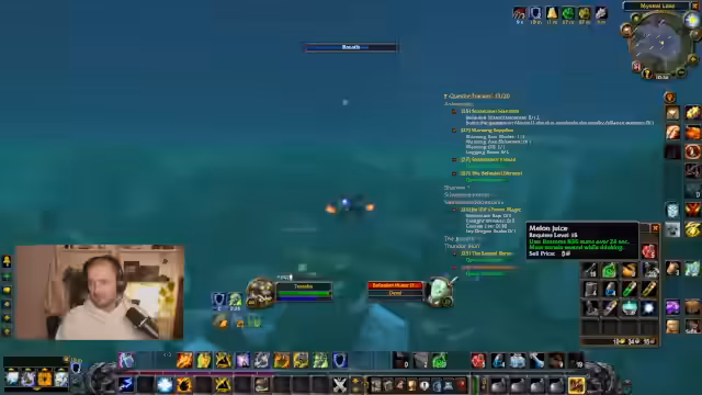 01:24:29Der Streamer wechselt das Thema und spielt World of Warcraft, um die Zeit bis zum nächsten Level-Cap zu überbrücken. Er versucht, auf Level 30 zu leveln und sammelt dabei Ressourcen wie Gegengift, Whistles und Schulteritems. Er hat Probleme mit Tränken und erwähnt, dass ihm ein Free Action Potion in einer Festung das Leben gerettet hat. Die Gegenstände möchte er den Zuschauern im Schlingelting später geben.