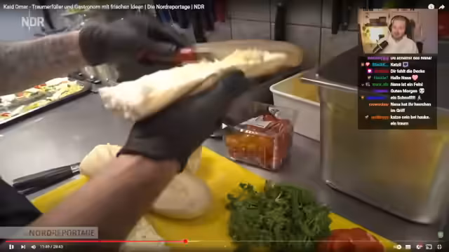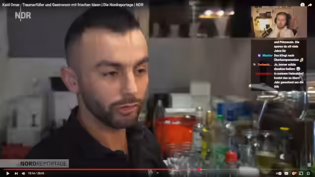 01:02:38Es wird die Erfolgsgeschichte von Kite, einem geflüchteten Koch, im Gasthof erzählt. Obwohl er anfangs kein Deutsch sprach und bei der Arbeit in der厨房 überfordert war, hat er sich zu einem erfolgreichen Wirt entwickelt, der heute den Laden führt. Nach seiner Volljährigkeit konnte seine Familie nach Deutschland nachziehen. Der Streamer erwähnt, dass Kite jetzt über dem Gasthof mit seiner Familie lebt und sich um Personal und Buchhaltung kümmert, während seine Mutter und Tante mithelfen.