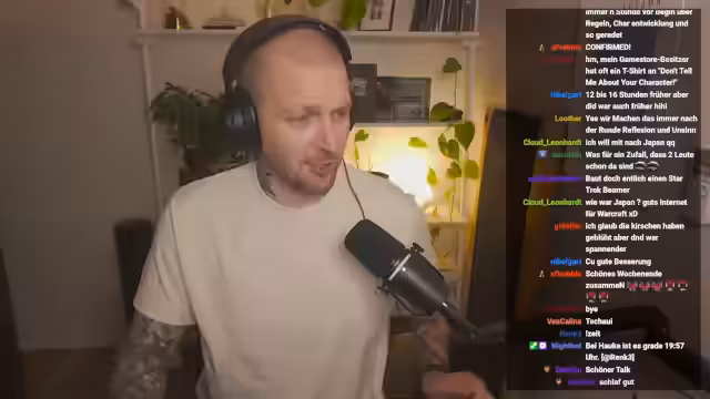 00:17:46Der geplante Pen & Paper Stream muss heute leider ausfallen, da Lisa aus der Runde krank geworden ist. Dies führte dazu, dass die Runde beschloss, den Stream abzusagen. Als spontaner Ersatz wurde ein Talk-Format initiiert, bei dem die vier verbliebenen Streamer einen entspannten Gruppentalk abhalten. Snow, einer der Streamer, schlug dies vor, damit niemand etwas verpasst und der Abend dennoch unterhaltsam gestaltet werden kann. Der Fokus liegt darauf, interessante Themen aus dem Chat aufzugreifen und einen lockeren Austausch zu pflegen.