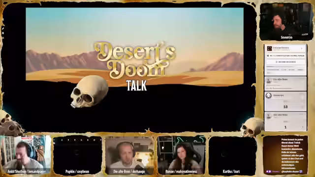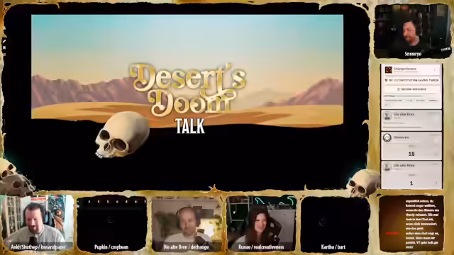 Aufgrund einer krankheitsbedingten Absage musste der Pen & Paper Stream kurzfristig abgesagt werden. Die verbliebenen Teilnehmer entschieden sich für einen spontanen Talk, um den Abend dennoch gemeinsam zu gestalten. Der Fokus liegt auf einem lockeren Austausch und der Aufarbeitung aktueller Themen der Gruppe.
