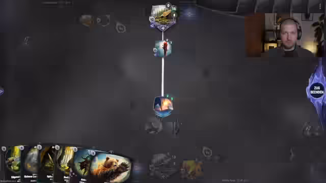 02:14:56Der Streamer überlegt, ob sein Gegner angreifen wird, und beschließt, durch den Ausspiel bestimmter Karten und den gezielten Einsatz von Boni die Situation zu kontrollieren. Es kommt jedoch zu einem Fehler in der Spielzugsreihenfolge, als ein Angriff auf das falsch gewählte Ziel verübt wird. Dieser Missplay wird als eigene Verantwortung gesehen und als Lernmoment für zukünftige Spiele bewertet.