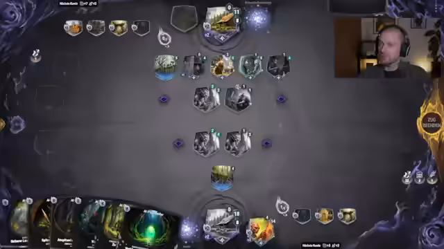 02:56:52Ein Spiel gegen die Krieger-Elite-Fraktion wird als extrem frustrierend beschrieben, da der Gegner einen scheinbar übermächtigen Vorteil durch Karten, die ihm Ressourcen und Kartenvorteil schenken, hat. Es wird der Eindruck vermittelt, dass man als Gegner kaum eine Chance hat, was zu der Frage führt, wie solche Decks kontert werden können und ob sie fair balanciert sind. Das Matchmaking wird hierfür in Frage gestellt.
