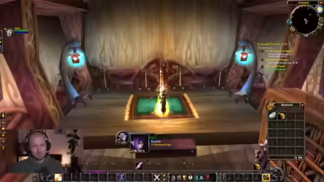 02:55:01Nach Kämpfen müssen sie Wasser auffüllen, was sie in einen blau leuchtenden Onsen führt. Sie buffen sich gegenseitig und bereiten sich auf weitere Quests vor. Ein Gespräch über Peggle als Minispiel wird kurz geführt. Parallel planen sie, Ressourcen für Koch- und Alchemie-Berufe zu sammeln, und diskutieren über den Quest-Flow in Horde-Zonen. Der Stream endet mit der Vorbereitung auf neue Abenteuer in der Nachtelfen-Welt.