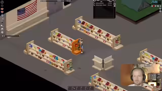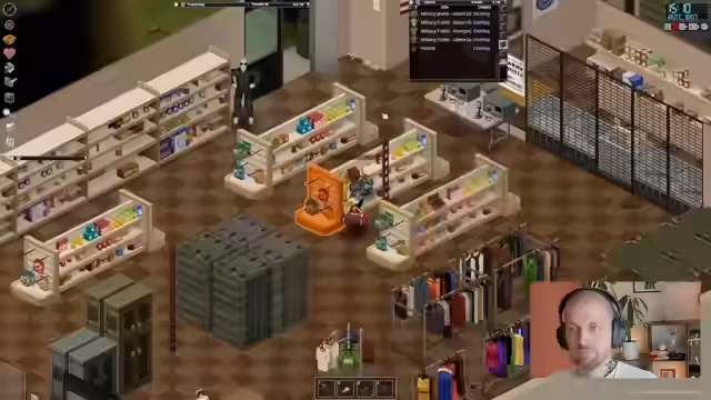 06:01:32Der Stream kehrte zum Spiel 'Project Zomboid' zurück. Das Hauptziel war es, eine Bleibe für die Nacht zu finden. Nachdem die Stadt durch Überlebende und Zombies als unsicher eingestuft wurde, fuhr das Team zu einem 'Military Supply Shop', um Campingausrüstung zu besorgen. Der Laden war menschenleer, was den Zugriff auf wertvolle Gegenstände wie Zelte, Rucksäcke und eine 'Utility Vest' ermöglichte. Der Plan wurde geändert, das Auto zurückzulassen und mit einem leichten Rucksack aus der Stadt zu Fuß zu fliehen, um unauffälliger zu sein.