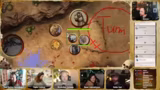 00:48:29Runei gelingt es mit Hilfe eines Zauberers, dem Angriff zu entgehen, indem sie sich vom Stachel des Skorpions lösen und den Schaden komplett blockieren. Kurz darauf wird Pappkin von einem zweiten Skorpion gepackt und in die Luft gehoben. Trotz eines rettenden, schützenden Lichts wird er durch einen Gifstachel schwer verletzt. Runai interveniert daraufhin und fesselt den Angreifer mit einer Sandhand, um ihn am Weiterkämpfen zu hindern. Bonifatius und Pappkin versuchen sich zu befreien, was Pappkin mit einem Acrobatics-Check auch gelingt.