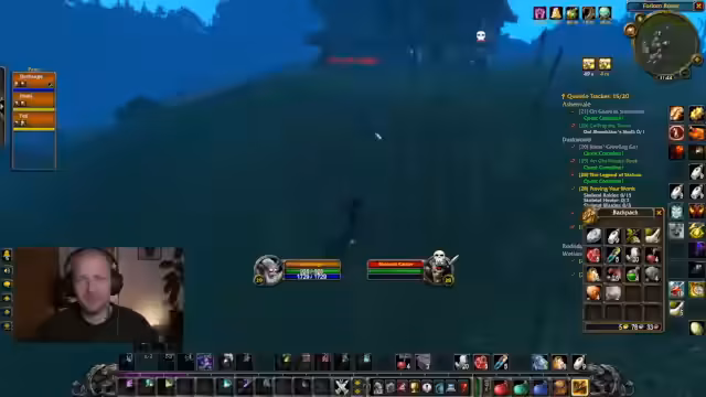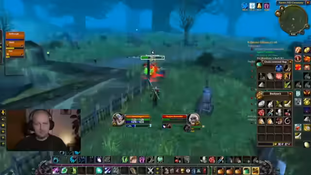 03:04:24Der Wert des Friedhof-Verlieses wird in Frage gestellt, da man oft weit laufen muss und die Rare-Mobs nicht immer vorhanden sind. Der weitaus bessere Drop-Rate von Burg Schattenfang wird betont. Ein unerwarteter PvP-Zusammenstoß unterbricht die friedliche Quest-Situation. Der kurze Plünder-Versuch wird jedoch als gescheitert quittiert, bevor man sich wieder dem Questen widmet.