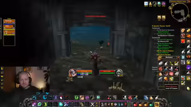 05:30:35Die Gruppe macht sich auf den Weg zum Kloster, einem gefährlichen Dungeon. Bevor sie jedoch eintreten, werden mehrere Warnungen ausgetauscht. Es wird auf die Gefahren von Gnome Regan und dem Kloster selbst hingewiesen, insbesondere auf instant tödliche Events, bodypulls und Mobs, die einen im Aufzug töten können. Die Gruppe wird ermahnt, vorsichtig vorzugehen und sich nach einem erfahrenen Spieler zu richten.