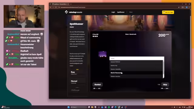 00:23:33Es wird über die Fähigkeiten und die Nützlichkeit verschiedener WoW-Klassen in Hardcore-Gruppen diskutiert, insbesondere im Hinblick auf das bevorstehende Event. Der Streamer äußert Zweifel an der Effektivität von Schurken in Support-Rollen und betont seine Präferenz für Klassen, die anderen Spielern das Leben retten können, wie Druiden mit ihren Heilfähigkeiten und Buffs. Ein interaktives WoW-Spell-Quiz wird gespielt, bei dem die Zuschauer und der Streamer versuchen, die richtigen Namen von Zaubern anhand ihrer Icons zu erraten. Dies führt zu amüsanten Fehlern und Diskussionen über die genauen Bezeichnungen der Fähigkeiten, insbesondere bei Schamanen- und Druidenzaubern. Es wird festgestellt, dass die englischen und deutschen Namen oft verwirrend sind und einige Zauber visuell sehr ähnlich aussehen, was das Quiz erschwert.
