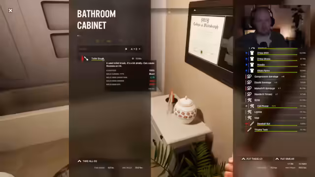 01:13:02Nach dem Start des Spiels entdeckt der Streamer eine Karte auf einem Handy, die ihm seinen Standort verrät. Er ist beeindruckt von der Detailtiefe, wie dem Plündern einzelner Schubladen und der Möglichkeit, Gegenstände abzulegen. Er rüstet sich mit gefundenen Gegenständen aus, darunter zwei Handys, und bemerkt, dass seinem Charakter kalt ist. Er findet Lockpicks und beginnt, verschlossene Türen zu öffnen, wobei er feststellt, dass er Glühbirnen stehlen und Gegenstände zerschneiden kann. Die Steuerung und das Kampfsystem sind zunächst unklar, aber er findet heraus, wie er Gegenstände zur Schnellnutzung hinzufügt und in die First-Person-Ansicht wechselt, die ihm besser gefällt. Das Lockpicking-Minispiel erfordert Präzision und wird nach einigen Versuchen gemeistert, was sich als lohnenswert erweist.