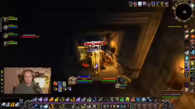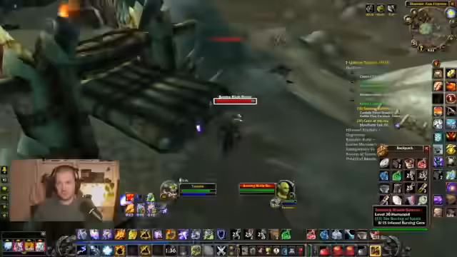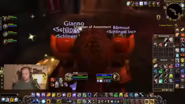 05:46:36Nach dem Abschluss der Farm-Aktivitäten in Desolace wechselt der Streamer zusammen mit seiner Gruppe in die Instanz Blackwing Lair (BWL). Kurz vorher besucht er Undercity, um Quests abzugeben und Inventarplatz zu schaffen. Die Gruppe koordiniert den Einritt über das Spiel. Währenddessen werden Gegenstände getauscht und im Inventar aufgeräumt, um Platz für loot aus der Instanz zu schaffen. Es wird deutlich, dass strategisches Item-Management wie Inventarplatz und Fächer für verschiedene Gegenstände wichtig ist.