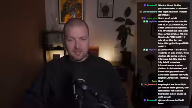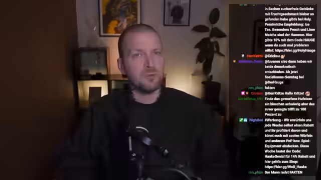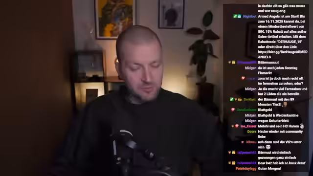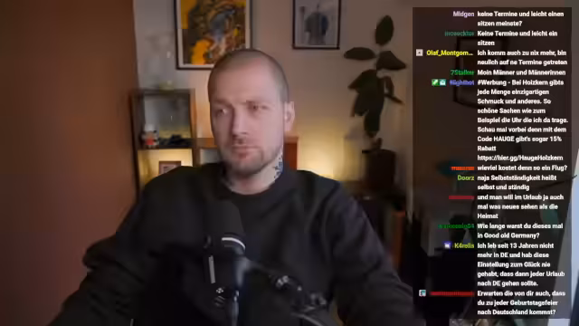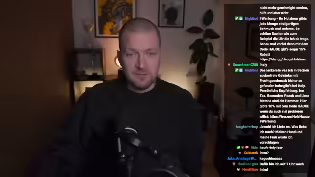 06:23:34Der Streamer nutzt die Gelegenheit, einen kurzen Werbeblock für Holzkern-Uhren einzuschieben. Er erwähnt, dass er selbst drei Uhren der Marke besitzt und diese regelmäßig trägt. Besonders gefällt ihm das Modell mit dem runden Ziffernblatt, das leider nicht mehr erhältlich ist. Er weist auf einen Rabattcode ('Hauge' für 15%) hin und erwähnt auch frühere Kooperationen von Holzkern, wie die 'Back-to-the-Future'-Uhr. Ein Zuschauer äußert Bedenken bezüglich der Haltbarkeit von Vollholzgehäusen bei Holzkern-Uhren, da diese aufgrund von Schweiß schnell altern und brechen könnten. Der Streamer entgegnet, dass seine Uhren mit Holzgehäuse immer eine Metallplatte auf der Rückseite haben, sodass das Holz nicht direkt auf der Haut aufliegt. Er lädt den Zuschauer ein, weitere Details auf seinem Discord-Server zu teilen, da er für solche Informationen stets offen ist.