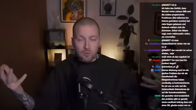 05:24:32Der Streamer spielt einen Ausschnitt einer Rede von Hanno auf den Video Days ab, die sich kritisch mit der zunehmenden Lagerbildung und der verschlechterten Diskussionskultur in sozialen Medien auseinandersetzt. Hanno betont, dass Gesellschaften und Communities immer weiter auseinanderdriften, es nur noch Schwarz und Weiß gebe, und die Diskussionskultur völlig am Ende sei. Er plädiert dafür, einander auf Augenhöhe zu begegnen und empathischer zu sein, selbst wenn man getriggert wird oder eine Person 'Scheiße gebaut' hat. Ziel sei es, zu überzeugen und nicht anzufeinden, da Anfeindungen nur zu Defensivreflexen führen und keinen Fortschritt bringen. Es müsse wieder möglich sein, unterschiedliche Positionen zu haben und Dinge auszudiskutieren, ohne sich direkt anzugreifen. Toleranz gegenüber intolerantem Verhalten sei jedoch nicht angebracht. Der Streamer stimmt dieser Einschätzung zu und entschuldigt sich für seine eigene emotionale Reaktion im Chat, die er auf seine Ermüdung von der ständigen Spaltung und den 'Strohmann-Debatten' zurückführt, die von Dritten genutzt werden, um die Menschen abzulenken und zu täuschen.